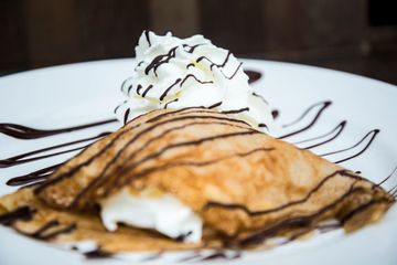 choice of pancakes, french toast or belgian waffle, strawberries & banana, drizzled with warm nutella sauce and topped with whipped cream